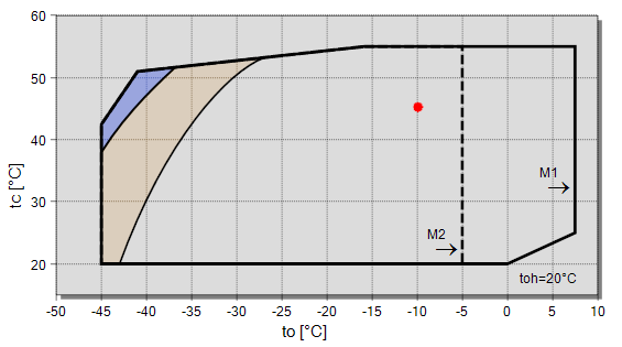 за стандартом EN12900 (R404a, темп. всмоктування пари 20°С, переохолодження рідини 0 К)