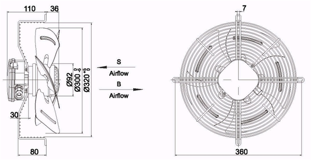 - YWF4E-300B-92/35-G - діаметр крильчатки (300мм)
